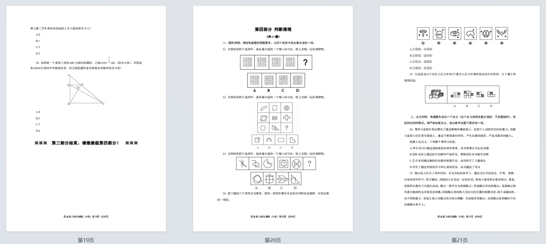 🔶A类试卷:《职测》包含五大题型:常识判断+言语理解与表达+数量关系+判断推理+资料分析;《综应》包含注意事项、背景材料和试题三部分,全部是主观性试题。